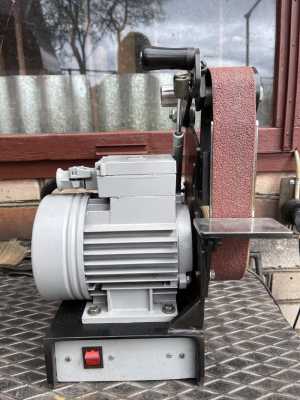 Ленточный гриндер, шлифовальный станочек с регулировкой оборотов и реверсом. Мощность двиг.150Вт.